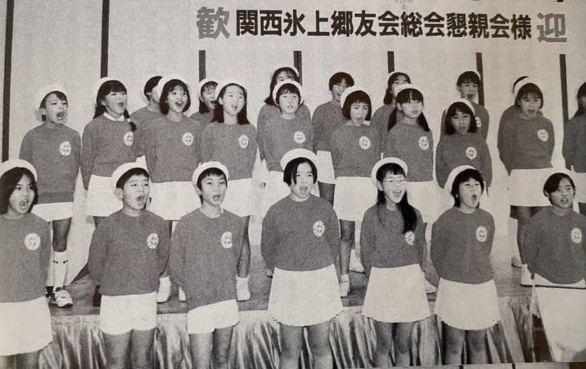 平成元年(1989年)11月に行われた90周年を祝う総会では、氷上群少年少女合唱団の来演を仰ぎました。同合唱団には制服70着を寄贈、また、記念事業として自由課題で書道優秀作品を求め、330名の応募の中から、入選者30名に墨と表彰状を贈呈しました。